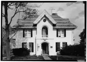 The Halsey Stevens House is a historic house located at 182 Grand Street in Newburgh, New York. It is one of the first residences designed by the architects Calvert Vaux and Frederick Clarke Withers after the death of their mentor Andrew Jackson Downing the previous year. Listed as part of the Montgomery—Grand—Liberty Streets Historic District in Newburgh, the house has been well-preserved and demonstrates how both worked with Gothic Revival and Italianate styles. Halsey R. Stevens, their client, was a lumber dealer and Biblical scholar.[2]
