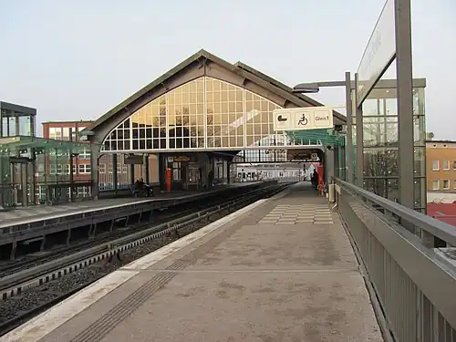 Hamburger Straße is a rapid transit station located in the Hamburg district of Barmbek-Süd, Germany. The elevated station was opened in 1912[1] and is served by Hamburg U-Bahn line U3.