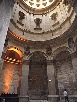 The Hamilton Mausoleum is a mausoleum located in Hamilton, South Lanarkshire, Scotland.[1] It was the resting place of the family of the Dukes of Hamilton.[2] The mausoleum is Category A listed.[1] Built in the grounds of the now-demolished Hamilton Palace, its high stone vault holds the record for the longest echo within any man-made structure in the world, taking 15 seconds for the sound of a slammed door to fade.[3] In 2014 the record was thought to have been broken at the Inchindown oil storage tanks in the Scottish Highlands, however this was classed as a reverberation, rather than an echo.[4]