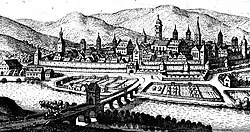 In the 12th century, the prince-abbots of Fulda built the castle of Saaleck on the heights over the Saale's left bank for Hammelburg's protection, which particularly served for control of the Trimburg established by the Hennebergs. In 1234, Würzburg succeeded in appropriating the Trimburg from the Hennebergs. Fulda answered this by moving closer to the old opponent with the attachment of Hammelburg and to the stronger development of Saaleck Castle. In 1303, under King Albrecht, town privileges were granted to Hammelburg. Walls and ditches surrounded the city, specifically three gate towers (Weiher, upper, and lower) and eleven military towers. From this time the Guardian, Monk and Baderturm, a part of the southern city wall and the Schlossweiher survive. Hammelburger citizens had begun in 1302 to build a church. This Church of Maria (Marienkirche) at the cattle market became a symbol of civil self-sufficiency. The parish church Johannes in the old castle district the Hammelburger was left to the national organization. The Marienkirche fell victim to a fire in 1854 that destroyed several other parts of the city. The gothic-era parish church (1389-1461) survives. Despite the support of Fulda and Würzburg, Hammelburg converted early to the Lutheran faith and only by force did the city return to Catholicism in 1604. 120 Protestant Hammelburger families left their hometown because of it.