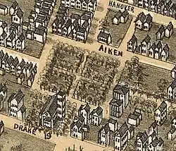 During the Civil War, however, the park was used for housing troops,[5] and the condition of the park did not immediately rebound. After the war, the property was used as a common pasture. Columus St. and America St. ran through the park at right angles (as wide promenades, but not continuations of the streets), dividing it into four quadrants by 1867.[6]