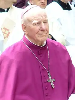 He was appointed auxiliary apostolic administrator of Erfurt-Meiningen and titular bishop of Mediana in May 1985 and ordained bishop by apostolic administrator and titular Bishop Joachim Wanke on 6 July 1985.[4] When the area became Roman Catholic Diocese of Erfurt in 1994, Koch became auxiliary bishop to Wanke.[3] His motto as bishop, Illum oportet crescere, was derived from John 3:30 ("He must become greater; I must become less").[5] He retired in 2004 at the age 75, the statutory retirement age in the diocese.[3]