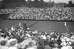 Moldenhauer (right) plays in Davis Cup against Bill Tilden (US). July 1929