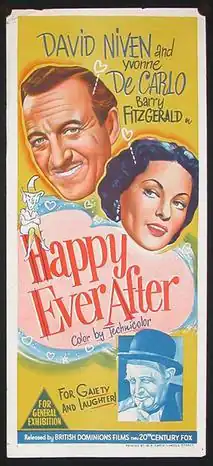 Happy Ever after is a 1954 British comedy film directed by Mario Zampi and starring David Niven, Yvonne De Carlo, Barry Fitzgerald and George Cole. Its plot concerns the accidental death of an Irish landowner who bequeaths his estate to his cousin.[3] It was released in the United States under the title Tonight's the Night.[4]