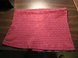 During the First Sino-Japanese War and World War II, a soldier going off to fight was often given a senninbari haramaki ("1,000 stitch belt") by his family. A mother, sister, or wife would stand on the street and ask passing women to contribute a stitch until 1,000 had been collected. The garment was meant to both provide warmth and serve as a talisman to ward away harm.[1]