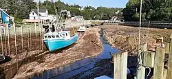 The area of Harbourville was originally granted to the Best family of New England Planters. They did not settle at Harbourville but logged the land which gained the location the name of Shingle Log Brook. The land around the brook was purchased by John Given and James Owens in 1824. They settled at the brook a few years later, built a pier and carried out logging as the area became known as Givens Wharf. The Hamilton family joined the settlement in 1829. The community became first a logging, then shipbuilding and trading centre exporting lumber and agricultural products from farms in the Berwick area of Annapolis Valley in the 1840s and 50s. On March 13, 1860 residents voted to choose the name Harbourville, reflecting the sheltered harbour created by the brook and piers. A Methodist church, which still stands as a United Church, was built in 1860 and a school house was built in the next year. The community declined in the late 19th century as timber resources were depleted and the Windsor and Annapolis Railway, later the Dominion Atlantic Railway, took over agricultural exports from the Annapolis Valley. The harbour continued to be used by inshore fishermen. Tourism became an industry in the early 20th century as a number of summer hotels operated, later replaced by summer cottages along the bay. Famous Hollywood actress Theda Bara owned a cottage in the area called "Baranook".[2] Fishing and tourism remain the principle industry. Harbourville's wharves were always managed locally and never became part of the Small Craft Harbour program of the federal government. Maintenance and operation of the wharves were taken over by the Harbourville Restoration Society in 1999. The east wharf was restored by the society in 2003 and the west wharf was restored in 2009.[3]