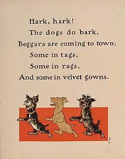 - ^ "Hark! Hark1 The Dogs Do Bark". mamalisa.com. Lisa Yannucci. Retrieved 19 December 2017. A 19th-century example, with an illustration by Kate Greenaway, is Mother Goose, or the Old Nursery Rhymes. London: Frederick Warne. 1881. p. 9. ISBN 9781582180465.