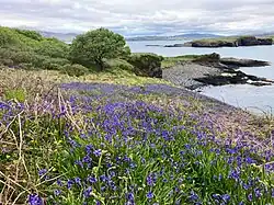 Harlosh Skerry lies just offshore to the north west, upon which seals can be seen frequently. At low tide on the northern coast there is a large sandy bay, however, watercraft should take caution when attempting to land in the bay as several rock formations pose a navigational hazard at low tide.