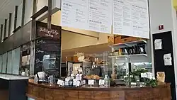 The menu includes bowls with steamed vegetables, wraps with jackfruit, lattes with turmeric, and shots of chlorophyll.[1] Options for the Betty Bowl include grains like quinoa, avocado, beans, eggs, kale and other vegetables.[6] Sauces for bowls include avocado cilantro and jalapeño cashew.[7] The restaurant has also served a macaroni and "cheese",[3] a veggie burger,[8] chipotle black bean chili, chanterelle and pumpkin soup with pepitas, as well as curry soup.[9] The "pasta" has zucchini "noodles" with carrot, spinach, and a sun-dried-tomato pesto.[10] Brunch options include mushroom scallion biscuits with tempeh gravy, and a spinach-kale scramble with chipotle cashew hollandaise. Some dishes include egg, which can be substituted with jackfruit or tempeh.[5] Another scramble has pesto, and banana-oatmeal-walnut pancakes are also served for breakfast.[11][12]