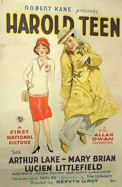 Harold Teen is a 1928 American silent comedy film directed by Mervyn LeRoy and written by Thomas J. Geraghty. It is based on the comic strip Harold Teen by Carl Ed. The film stars Arthur Lake, Mary Brian, Lucien Littlefield, Jack Duffy, Alice White, and Jack Egan. The film was released on April 29, 1928, by First National Pictures.[1][2][3][4]