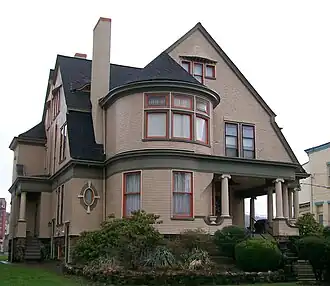 Harry C. and Jessie F. Franzheim House is a historic home located on Wheeling Island at Wheeling. It was built in 1897, and is a three-story shingle style dwelling. It sits on a sandstone foundation. It features a cross gambrel roof with a long slope, two round towers with curved-glass windows, and a wide front porch with Ionic order columns.[2]
