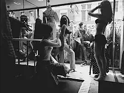 The shop was one of the new wave of fashionable boutiques that were revitalising Carnaby Street which before the early 1960s had been a down-at-heel area of mixed shops. Lady Jane was on the site of a former dairy.[5] Designer Marion Foale described the general Carnaby area in 1962 as follows: "People lived there, there was a dairy, a tobacconist, a newsagent – there was this little courtyard and everything… a proper village, though very run down."[6] The shop's name is an allusion to Lady Chatterley's Lover, which uses the term "Lady Jane" to mean female genitalia; The Rolling Stones released a song entitled "Lady Jane" at almost the exact same time as the boutique opened.[7][8]