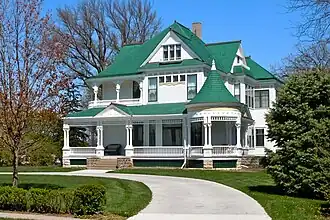 The Harry T. Jones House is a historic house in Seward, Nebraska. It was built in 1889 for Harry T. Jones, the president of the Jones National Bank.[2] It was designed in the Queen Anne style by George A. Berlinghof.[2] According to historian Joni Gilkerson of the Nebraska State Historical Society, "The main wrap-a-round porch displays classical support colonettes grouped together in units of two or three, a balustrade, spindlework, pediments with decorated tympanums, and a distinctive corner turret with a conical roof of patterned shingles. The second story wrap-a-round porch exhibits similar detailing, including ornamental latticework."[2] The house has been listed on the National Register of Historic Places since November 28, 1990.[1]