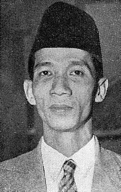 Harsono Tjokroaminoto (born 24 April 1912, in Madiun– 22 April 1992) was an Indonesian political figure leaning non-cooperative with the Netherlands. Harsono is Minister of State for Administrative Improvement and Cleaning in Indonesia.[1] In the Dutch colonial period he had a career as a teacher and school inspector Kweekschool PSII, PSII region of North Sulawesi. He helped and led various newspapers and magazines Islamic-leaning politics, author of several brochures, especially the character of politics and all Islam's. In the era of Japanese occupation he spent some time working on Domei Jakarta, and had also came to be in captivity of the Kempeitai, for participating in the movement of Indonesian youth who want to knock down the Japanese government. In 1946, he served as deputy Secretary of State in the Natsir Cabinet; and in 1955, he served as deputy prime minister in the Harahap Cabinet.[2]