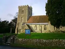 The Church of England parish church of Saint Matthew may date from the 11th century.[4] In 1962, The Times reported that walling had been found west of the tower indicating where a former nave had been.[4] The herringbone layering of the masonry suggested that an 11th-century date is likely.[4] At the same time a pewter chalice from about 1200 was found.[4] The present nave, east of the tower, was built in about 1200.[4] This second nave has north and south aisles with three-bay arcades.[4] The west tower may have been at the same time, but its Early English Gothic bell openings suggest that it may not have been finished until the middle of the 13th century.[5] The Decorated Gothic chancel is early 14th century and has a five-light east window.[5] The rood screen is probably of the same date, but the screen's Perpendicular Gothic top is later.[5]