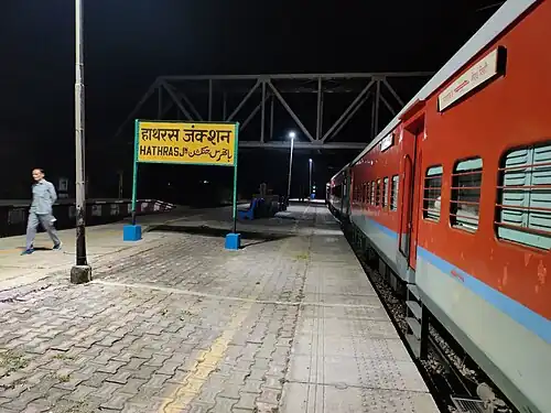 Hathras Junction railway station is on the Kanpur–Delhi section of Howrah–Delhi main line and Howrah–Gaya–Delhi line. It is located in Hathras district in the Indian state of Uttar Pradesh. It serves Hathras and surrounding areas.