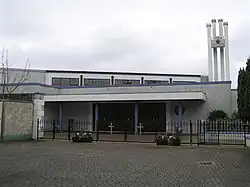 10. St. Mary’s Roman Catholic Church. The website https://www.swanlinbar.ie/st-marys-church/ states- St. Mary’s, Swanlinbar was 130 years old in 1958 (it was built in 1828 by Rev. Philip Kiernan to replace a thatched chapel in Gortacashel townland and renovated in 1927 and 1959) and was in urgent need of reconstruction. It was decided to enlarge and modernise the edifice and at the time incorporate the old church in the new structure. Most of the old church was incorporated in the renovated structure that was destroyed by a bomb on 8 December 1974. After this devastating blow, the decision was soon made to demolish the old church, damaged beyond repair and to erect a modern church, in terms of liturgical requirements, and yet standing favourable comparison with the building that had gone before. The new Saint Mary’s church was re-dedicated by Bishop Francis McKiernan on 15th August 1978. The website www.buildings ofireland.ie describes the building as- Freestanding fan-plan double-height Roman Catholic church, built 1978, with central projecting sanctuary in curved east elevation, clerestorey windows to front elevation over single-storey section rotated to face Chapel Square containing entrance lobby, sacristy to north-west and side chapel to south, belfry composed of four freestanding concrete columns in V-arrangement rising from sanctuary of side chapel, lower canopy on round columns across front elevation. Metal-sheeted roof to main church space of radiating timber-clad beams sloping upward from clerestory over entrance lobby to wider altar end with flush rooflights over sanctuary. Aluminium coping to parapets, flat roofs to canopy, entrance lobby, side chapel and sacristy. Roughcast rendered walls with smooth rendered plinth course. Round polished stone plaque within canopy inscribed 'ST MARY'S / CATHOLIC CHURCH / DEDICATED / 15TH AUGUST 1978 / BY / MOST REV / FRANCIS J. McKIERNAN D.D / BISHOP OF KILMORE'. Aluminium windows to clerestory, side chapel, and sacristy. Double-height angle-headed aluminium windows flanking wide end of church space. Vertical slit windows forming projection in sanctuary. Three timber doors open to canopy above single step. Acoustic ceiling panels on lateral purlins over radiating timber clad beams supported on engaged columns at narrow and wide ends of main church space. Painted fairfaced blockwork walls, stained glass to clerestorey and sanctuary of side chapel. Timber seating arranged in wedge-shaped blocks radiating from rectangular altar extending forward from sanctuary recess below four-sided rooflight shaft angled to underside between central beams. Set back streetline with pedestrian access via steel gates. Appraisal- A church of striking modern design built to replace an earlier structure destroyed in a bombing in 1976. Characteristic of the Modern style favoured by the Roman Catholic Church in the decades after the Second Vatican Council (1962-65), the design by Hubert Duffy is a composition of volumes reflecting the internal spatial arrangement with a Modernist belfry to add verticality to the composition and to mark the position of the church within the town. Following the precepts of the Modern Movement, structure and light are the central architectural features of the interior, with natural light introduced to highlight the altar and sanctuary as the central focus of the space. The church adds a notable twentieth-century layer to the predominantly eighteenth- and nineteenth-century streetscape of Swanlinbar.[46]
