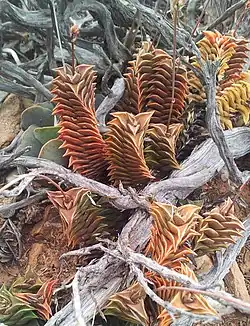 - ^ Manning, John; Boatwright, James S.; Daru, Barnabas H.; Maurin, Olivier; van der Bank, Michelle. A Molecular Phylogeny and Generic Classification of Asphodelaceae subfamily Alooideae: A Final Resolution of the Prickly Issue of Polyphyly in the Alooids? Systematic Botany, Volume 39, Number 1, March 2014, pp. 55-74