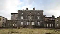 It consists of a 5-bay by 3-bay main block in three storeys with 2-storey wings on either side connected to the main block by single-storey quadrants. The building is constructed of limestone ashlar with slate roofs.[4]