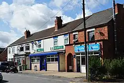 By 1930 further housing had been built, including side streets off Station Road and The Avenue, as well as west of the traditional village centre along Stallingborough Road.[20] Further housing expansion occurred in the second half of the 20th century, with an estate built to the east of 'The Avenue'.[21] The yard and the western signalbox was closed in the inter-war years, however the Cattle Dock remained.