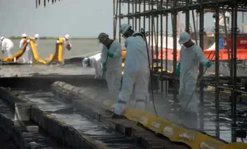 A second HHE was conducted afterwards to assess exposures to workers performing onshore cleanup work. Worker tasks evaluated as onshore work include wildlife cleanup and rehabilitation, beach cleanup, and decontamination and waste management. Exposure to oil residues and other chemicals were found to be minimal for workers assigned to wildlife and beach cleanup duty. Sampling for chemicals, particulates, and noise exposures were found to be below occupational exposure limits for decontamination and waste management activities. For all onshore work, heat stress and ergonomic hazards were found to be the greatest threats to worker safety and health.[25]