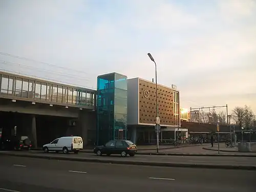 Heemstede-Aerdenhout (Dutch pronunciation: [ˌɦeːmsteːdə ˌʔaːrdə(n)ˈɦʌut]) is a railway station in Heemstede and Aerdenhout, Netherlands. The station opened on 1 October 1891 and is located on the site of the old Toll house for the Leidsevaart canal, which still flows next to the station from Haarlem to Leiden. This canal still follows the Oude Lijn (Amsterdam - Rotterdam) closely. The train soon became the favored method of travel after the station opened, and the canal has gone out of use since the end of the second world war. The current station building was opened in 1958 and was one of the first Dutch viaduct stations.