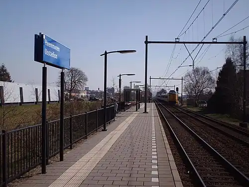 Heerenveen IJsstadion (English: Heerenveen Ice Stadium) was a small railway station located in Heerenveen, Netherlands. The station, located about 3.5 kilometer from Heerenveen railway station, was operated by Nederlandse Spoorwegen and was only serviced in the event of sporting events at Thialf, the ice arena in Heerenveen. Since 2015 there are no more trains serviced to this station due to the high costs.