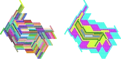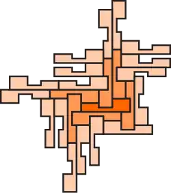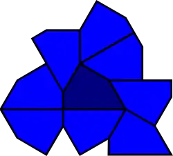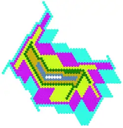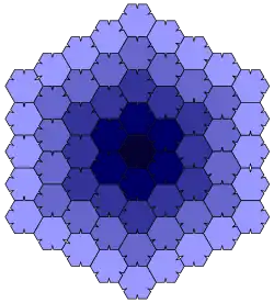 In geometry, the Heesch number of a shape is the maximum number of layers of copies of the same shape that can surround it with no overlaps and no gaps. Heesch's problem is the problem of determining the set of numbers that can be Heesch numbers. Both are named for geometer Heinrich Heesch,[1] who found a tile with Heesch number 1 (the union of a square, equilateral triangle, and 30-60-90 right triangle)[2] and proposed the more general problem.[3]