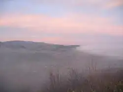 ![]() Early morning view from Heimburg Castle looking west over the village towards the Harz | |