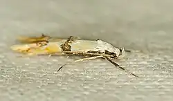 The wingspan is 14–18 mm. Adults are on wing from May to the first half of August.