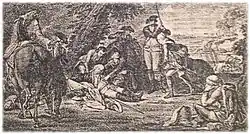 In the spring of 1759, when Dohna went to Berlin to recuperate from illness, Manteuffel assumed Dohna's command. In the middle of May, Manteuffel led the greater part of the troops to Stargard against the Russians.[3] Here Dohna, now advised by Moritz Franz Kasimir von Wobersnow, resumed command briefly.[1] Manteuffel fought at the Battle of Kay on 23 July 1759, and was wounded there while trying to break the Russian right flank; later, in Berlin, he was ordered to form a corps with which he was to expel the Swedes from the Prussian territory. In January 1760 he attempted to push the enemy back, he was attacked and wounded on the 28th of that month in the early morning hours at Anklam, while he and his troops engaged in hand-to-hand combat with the Swedes. An armistice of Ribnitz, concluded on 7 April 1762, ended the Pomeranian War. His injuries, though, proved sufficient to retire. He went to his estate Collatz in the district of Belgard in Hinterpommern, where he died on 10 July 1778.[3]