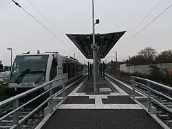 The car park, the platform and the platform canopy were largely finished in July 2013. To ensure that the traffic to the station does not have to pass through the town centre, the parking lot is only accessible by car via an access road from Industriestrasse.
