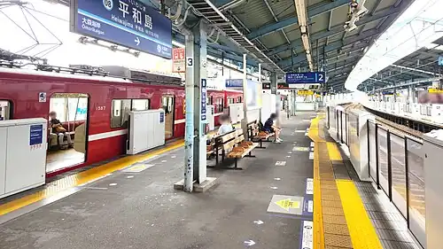Heiwajima Station (Japanese: 平和島駅, romanizedHeiwajima-eki, [heːwaʑimaꜜ eki]) is a railway station of the Keihin Electric Express Railway located in Ōta, Tokyo, Japan.
