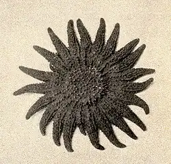 Heliaster solaris commonly known as 24-rayed sunstar is a possibly extinct sea star which was known from the waters near Española Island in the Galápagos Islands. The species was endemic to the Galápagos Island group, where it appears to have been strictly restricted to the waters around the Isla Espanola.