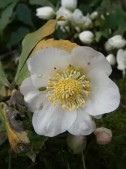 Helleborus niger, commonly called Christmas rose or black hellebore, is an evergreen perennial flowering plant in the buttercup family, Ranunculaceae. It is one of about 20 species from the genus Hellebore. It is a poisonous cottage garden favourite because it flowers in the depths of winter.