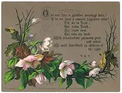 Helleborus niger is commonly called the Christmas rose, due to an old legend that it sprouted in the snow from the tears of a young girl who had no gift to give the Christ child in Bethlehem.[2]