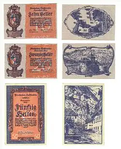 In Liechtenstein, emergency money was in circulation from 1919 to 1924. The denominations were based on the heller.
