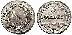 The Heller, also called the Haller or Häller (German: [ˈhɛlɐ] ), in Latin sources: denarius hallensis or hallensis denarius, derives its name from the city of Hall am Kocher[3] (today Schwäbisch Hall).[4][5] Silver coins stamped on both sides (Häller Pfennige) were called Händelheller, often depicted a hand. A distinction was made between white, red, and black hellers.
