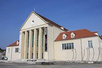 To the north-west the Festspielhaus provides a cultural focus. This housed a Rhythmic Gymnastics centre during the Second World War. The central building here still holds some remnants of its communist past, when it served as a Russian barracks from 1945 until 1989. The building has been restored and is now a base for a dance company.