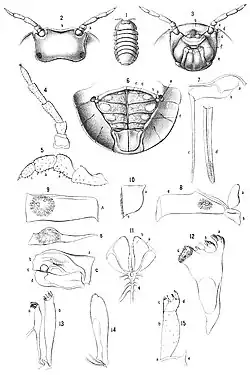 19. ^ Budde-Lund, Gustav (1885). Crustacea Isopoda Terrestria per Familias et Genera et Species (in Latin). Copenhagen: Hauniae, Sumtibus Auctoris. pp. 280–281. doi:10.5962/bhl.title.109769. OCLC 1042907183 – via archive.org.
