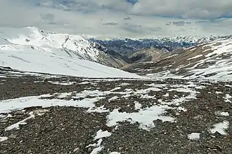 Ganda La (also called the Kanda La,[11] 34°2′29.62″N 77°21′45.42″E / 34.0415611°N 77.3626167°E) is a high mountain pass located at around 4980 metres above sea level in Ladakh, 23 km (14 miles) south-west of Leh, in the Himalayas in India.[11] It lies within the Hemis National Park.[12] and connects the Markha valley villages to Leh, and is regularly used by local people. The summer pass is open from June, and the winter pass (half kilometre north-west of summer pass) is open from late April.