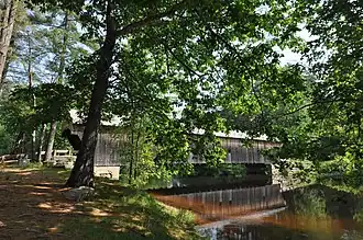 The Hemlock Bridge is a covered bridge in a rural part of Fryeburg, Maine. Built in 1857, it carries Hemlock Bridge Road over the Old Course Saco River, near the western shore of Kezar Lake in eastern Fryeburg. It is the last surviving 19th-century covered (of seven built) in Fryeburg. It was listed on the National Register of Historic Places in 1970 and designated as a Maine Historic Civil Engineering Landmark by the American Society of Civil Engineers in 2002.[1][2]