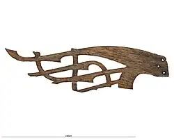 Before the present Hemse Church was built there was a stave church from the early Christian period in the beginning of the 11th century.[1] The solid and richly ornamented stave planks of oak was used as a wooden floor in the present church. This stave church, or perhaps palisade church[2] with sills (since it is unclear how the corners were constructed), is the only more or less complete church rediscovered from the Christianization of Sweden.