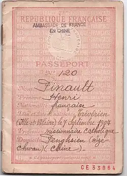 - ^ "Henri Pinault's 1945 French Passport Issued in China". Internet Archive. 2009. Retrieved May 30, 2009.