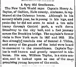 Henry A. Tayloe, Travel Announcement to New York City, New York, 1887