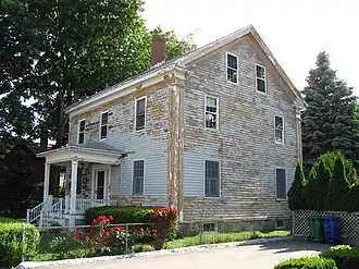 The Henry Bigelow House is located in a residential area north of the central commercial area of Newton Corner. It is located on the west side of Bigelow Terrace, a dead-end spur extending southward from Boyd Street in neighboring Watertown. The mailing address of this property is in Watertown.[2] The house is a 2+1⁄2-story wood-frame structure, three bays wide, with a side-gable roof and clapboard siding. Its Greek Revival features include corner pilasters and an entablature below the eave. The center entrance is sheltered by a single-story hip-roofed porch, with square posts supporting an entablature and hip roof with balustrade.[3]