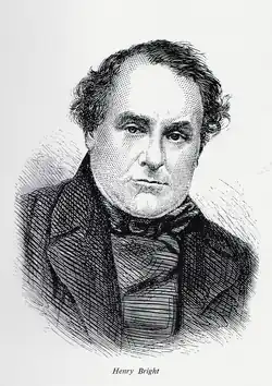 Henry Bright was born on 5 June 1810[1] in Saxmundham, Suffolk, the third son of some nine children of Jerome Bright (1770–1846), a clockmaker, and Susannah Denny, of Alburgh in Norfolk, who were married on 28 June 1790. Jerome and Susannah Bright attended services in the Congregational chapel at Rendham, a few miles from Saxmundham.[note 1]