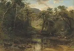 Cleenewerck's A Cuban landscape with drovers and cattle fording a stream (1867)