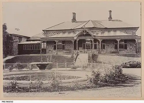Henry put a great deal of effort into the development of the "Anlaby" residence. What had started in 1841 as a shingle-covered hut built by overseer Alexander Buchanan and his wife Penelope Ann, née Haddrick[1] he developed into what has been described as a "mansion, set in delightful surroundings".[2] The property decreased in size and importance over the years: part was subdivided for "closer settlement", then another tranche was acquired by the State government for "soldier settlement", but Henry also acquired additional property: North Booborowie, near Burra, in partnership with John Melrose, and Koonowla vineyard and orchard, on the road between Saddleworth and Auburn. He purchase Koonowla in 1906 for £10,000, and owned the estate until his death.[3]