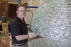 Tikkun, inspired by the Hebrew phrase Tikkun olam, or "healing the world," was first shown at the Miami-Miami Beach Sculpture Biennale. These orbs, or hollow spheres, are constructed from layered arcs of fractured glass, fused together to form a crystalline whole. The bonding technology, together with precise calculations, permits the construction of very large forms. The orb at the Frost Art Museum Sculpture Park at Florida International University measures six feet in diameter and weighs approximately 5,000 pounds.[14]